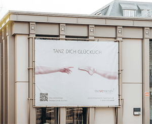 14/10/25: Auf dem neuen Großplakat der Ballettschule movements gibt sich der Fuß die Hand. Tanz dich glücklich an dieser außergewöhnlichen Location.LUST AUF GUTE Party